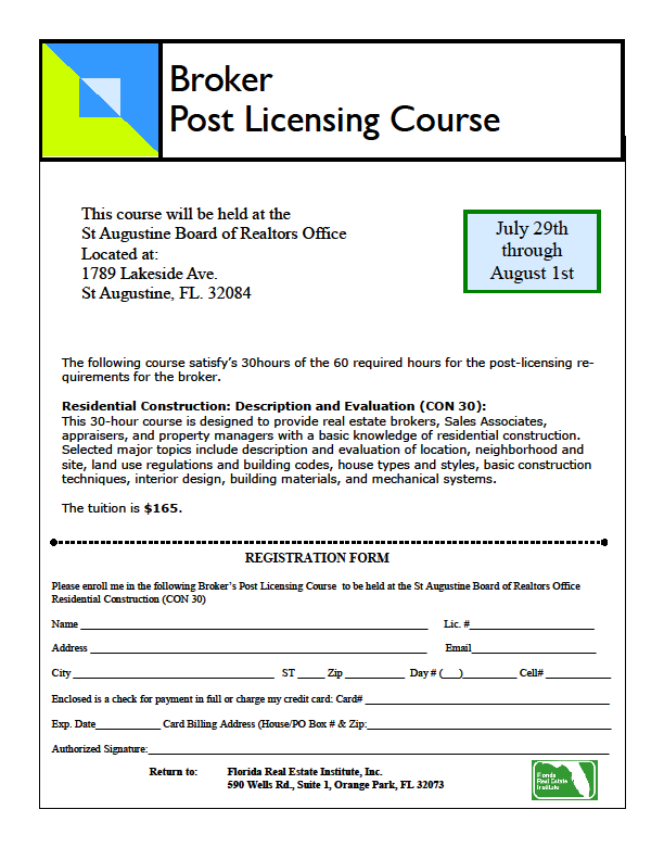 Shown below and attached as a flyer is the notice of a Broker Post Licensing